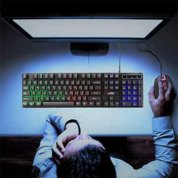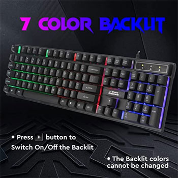 Gaming Keyboard Wired 7 Color LED Illuminated & Spill Proof Keys, Black, Medium