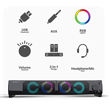 USB Powered. Frequency response: 100Hz-18kHz Volume control, Separation ≥50dB RGB lights