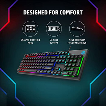 Wired Gaming Keyboard with Mixed Color Lighting, Metal Panel with Logo Lighting, 26 Anti-Ghosting Keys, and Windows Lock Key