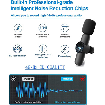 Wireless Lavalier Microphone, 65ft barrier-free effective distance & 0.009s delay in transmission allow you to move around, make you get rid of the trouble of holding and cord. Ideal for Youtube / Vlog video recording, Facebook / TikTok Live Stream, Interview, Church, Presentation, virtual conference, etc.